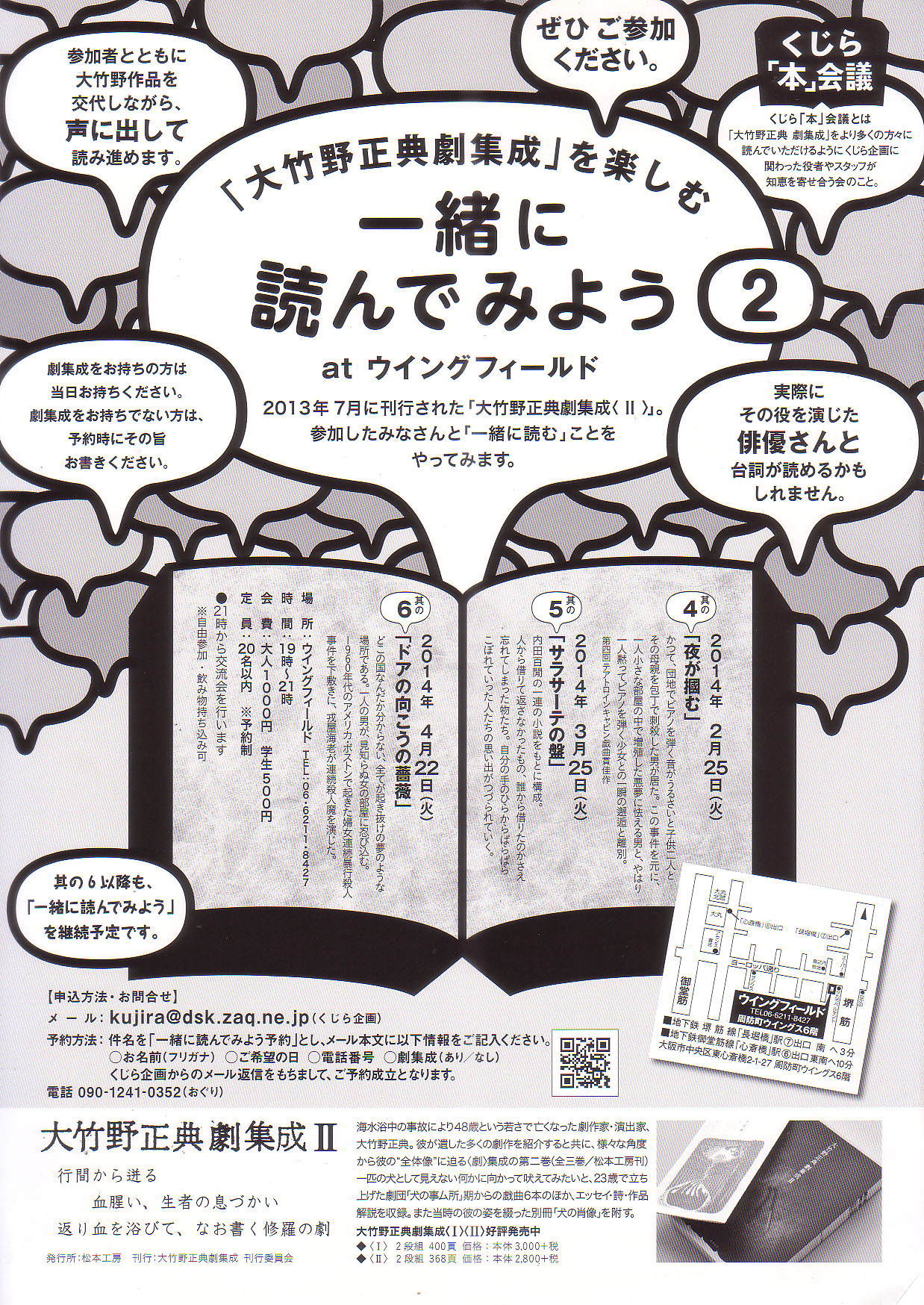 *********************************** ●其の5 2014年 3月25日(火) ●其の6 2014年 4月22日(火) 【場 所】 【会 費】大人1,000円 学生500円 ●21時から交流会を行います 【申込方法・お問合せ】