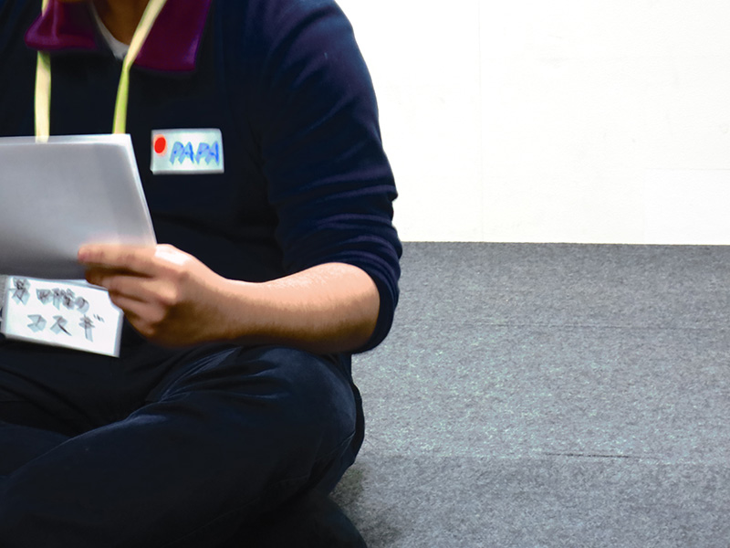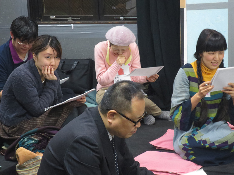 おぐりんは加奈さんからのバトンタッチでキャスティングを担当。 今回は参加頂いた皆さんにニックネームワッペンを付けていただいて、 『一緒に読んでみよう』では そんな舞台上では スタッフくじらチームも負けられませんっ。