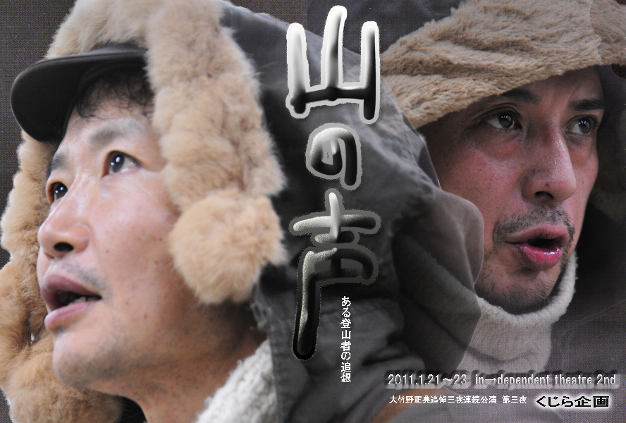 何度書いても途中絵文字エラーで消えちゃう、、、 絵文字なしで再度挑戦! 昨日は音響の大西さん、照明の鈴美さん、舞監の谷本さん、 スタッフ勢ぞろいの中で通しました。 まぁ、ずーっと毎回ほぼ通し!な濃い~お稽古ばかりしているので 見守るギャラリー陣もなんら緊張はありません。 もちろん、大過なく無事終了♪ 私は、前回、写真を撮ったせいか表情をすごくよく憶えていて 少し変えて演じているところは敏感にわかって楽しかったです☆ 特に昨日は村尾さんがいろいろ変えていましたね。 まだまだ一ヶ月前、正念場はこれからです!! 相変わらず表情豊かな海老さん。 観客の視線を一身に。 年が明けると一層怒涛のお稽古日程。 お稽古場に来るたびに 『山の声』のキツさが身に染みる今日この頃、、、 芝居の神様、どうか二人のサポートをよろしくお願いします!! 祈らずにはいられません。 特に海老さんは、サラサーテから連続3公演出演ですから。 さてさて、ほんの数日たつと新しい情報が! ここでは間に合わずでしたが、昨日24日の毎日新聞夕刊のコラムに 『山の声』をとりあげていただいてました。 21日の読売新聞と 並べて写メってみました♪ オットーさんの最新ブログ記事では 上映会作品『屋上のペーパームーン』について熱く語られております☆ ↓ ottotakaoka.0100.jp/ 私も一人でも多くの方に『山の声』を観て頂けるように ますます気合いれてがんばらなくちゃ!! あ~、よかった、やっと無事投稿にこぎつけた~ by 藍田マリン 本日はなんちゃってカメラマンで大活躍してきました ことぶきメイト、みんなで萌えました 『山と溪谷 1月号』(発売中)155頁に そして先日取材して頂きました読売新聞さんの記事、明日21日夕刊に掲載です。 『くじら |